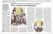 Наш детский сад с апреля 2022 года дружит с МБДОУ "Детский сад № 140 г. Чебоксары". В свежем номере газеты «Наш Зеленый Дол. Зеленодольск» от 02.11.2022 г. в рубрике «Культура разных народов» вышла статья заведующей Наталии Юрьевны Степановой «Что такое пахтаница?». Благодарим редакцию газеты, корреспондента Светлану Васильеву за публикацию и информационную поддержку межрегионального моста дружбы.