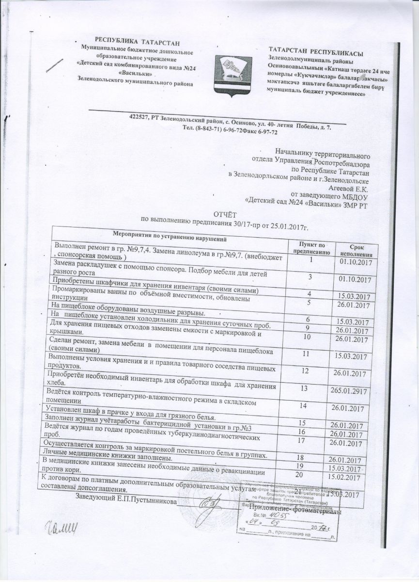 Отчет об исполнении предписаний