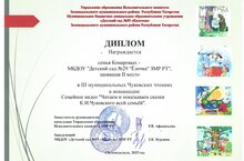Дипломом победителя за 2 место в III муниципальных Чуковских чтениях награждена семья Комаровых!!!Поздравляем и желаем дальнейших творческих побед!!! Спасибо организаторам конкурса.