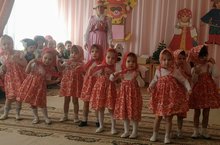 Сегодня в нашем ДОУ в рамках фестиваля Русской культуры, объявленного "Русским обществом ЗМР РТ" был организован и проведён праздник "Русские посиделки". Цель которого - приобщение детей к русским традициям, к родной культуре. На фото девочки группы № 11 исполняют танец русских матрёшек.