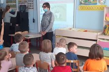 26 апреля 135-летие со дня рождения Г.Тукая. В средней и старшей группе прошли беседы.Воспитатель по обучению татарскому языку Хайруллина Ф.Т. познакомила с биографией поэта, показала презентацию, выставку книг. Дети читали стихи Г. Тукая наизусть. В конце беседы прошел показ мультфильмов по произведениям Г.Тукая.