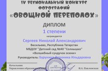 Поздравляем Сергеева Николая и его семью с победой в Региональном конкурсе "Овощной переполох".