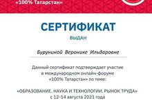 Балалар бакчасы мөдире һәм педколлективы 2021 елның 12-14 августында "100% Татарстан" халыкара онлайн-форумында катнашты.