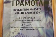 2021 елның 27 августында бистә көнендә балалар бакчасына "Чәчәкләр,ВасильеВО!" иң яхшы балалар бакчасы" номинациясендә. Котлыйбыз!!!