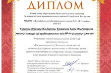Балалар бакчасы педагоглары Кувшинова Е.В. һәм Бурунина В. И. мәктәпкәчә яшьтәге балаларны поликультура тәрбиясе һәм укыту буенча "Кызыклы китап" муниципальара лэпбуклар конкурсында 1 урын Диплом белән бүләкләнделәр. Афәрин!