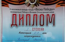 Победитель V поселкового конкурса чтецов "Весна Победы", посвящённый Победе в Великой Отечественной войне 23.04.2021