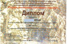 Балалар бакчасында тәрбияләнүчеләр "дөньяның игелекле фәрештәсе"иҗади конкурсында катнаштылар. Матвей Н. - Гран-при (педагоглар: Ксенофонтова С.В., Андряшина Н. Н.); Раяна Б. - 2 урын (педагоглар: Бачева О. В., Кувшинова Е. В.); Айзада Г. - 2 урын (педагоглар: Бачева О.В., Кувшинова Е.В.).