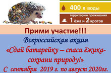 Продолжается акция "Сдай батарейку - спаси ёжика!" на 2019-2020 гг. 12.10.2019