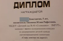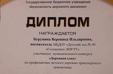 Участник муниципального конкурса "Дорожная елка" - Бурунина Вероника Ильдаровна награждена дипломом.