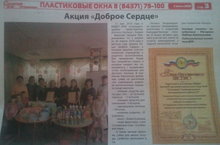 Публикация статьи "Доброе сердце" - газета "Волжские страницы" № 21 от 02 июня 2018 года 02.06.2018