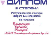В целях профилактики безопасного поведения на дорогах, воспитания законопослушных участников дорожного движения, пропаганды здорового образа жизни, ГБУ ДО «Республиканский центр внешкольной работы» МОиН РТ совместно с МБУДО «Центр детского творчества Танкодром» Советского района города Казани в период с 15 января по 28 февраля 2018 г. был проведен Республиканский конкурс творческих работ «Дорога БЕЗ опасности». Всего на Республиканский конкурс творческих работ «Дорога БЕЗ опасности» поступило 787 работ 1093 учащихся из 159 образовательных организаций территорий РТ. Воспитанники подготовительной к школе группы №4 - воспитатели: Тихонова Юлия Рифатовна и Брагина Ирина Михайловна - МБДОУ №40 "Солнышко" приняли активное участие в трёх номинациях и заняли призовые места: