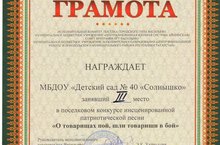Педагогический коллектив МБДОУ №40 "Солнышко" занял III место среди дошкольных организаций.