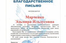 Благодарственное письмо педагогам ДОУ- Даниловой С.М. и Марченко Э.И. за подготовку победителей конкурса "Космическая поделка" 27.04.2018