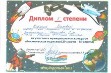 Победители муниципального конкурса "Космическая поделка" 28.04.2018