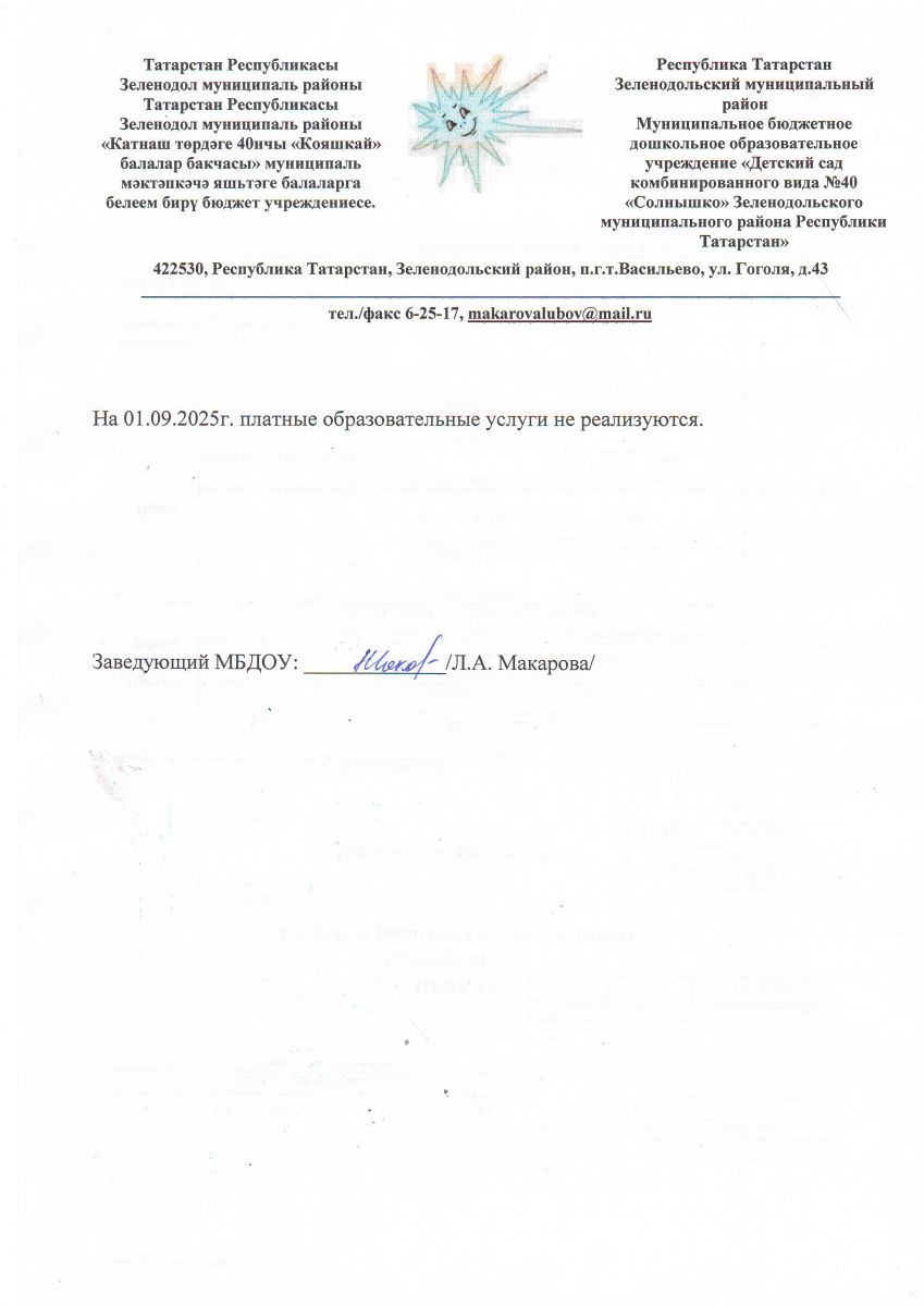 Муниципальное бюджетное дошкольное образовательное учреждение "Детский сад комбинированного вида №40 "Солнышко" Зеленодольского муниципального района РТ"/Татарстан Республикасы Зеленодол муниципаль районы "Катнаш төрдәге 40 нчы "Кояшкай" балалар бакчасы" муниципаль мәктәпкәчә яшьтәге балаларга белем бирү бюджет учреждениясе"