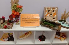 В нашем детском саду стало традицией проводить выставки совместных работ родителей и детей. Такие мероприятия сближают родителей и ребёнка, позволяют им не только выразить свой творческий потенциал, но и демонстрировать свои таланты, воспитывать добро и человеческое отношение ко всему окружающему, развивать семейное творчество! Осень – чудесная пора и она вдохновляет своей яркостью и пестротой красок на воплощение прекрасных творческих идей. С 10 по 17 октября в нашем детском саду организована выставка поделок из природного материала «Подарки осени». Родители совместно с детьми смастерили замечательные поделки: забавных животных, красавицу Осень, осенние композиции, которые можно назвать настоящими произведениями искусства. Ни одна работа не повторяется. Все экспонаты выставки – стали прекрасным украшением интерьера наших групп и холла на втором этаже. В каждой работе прослеживается творческая индивидуальность и фантазия каждой семьи. Все работы оригинальны, неповторимы и интересны.