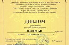 Поздравляем нашего воспитанника, Гимадиева Аяза с победой в региональном конкурсе "Тукай мирасы". Аяз занял почетное 2 место. Благодарим родителей Аяза, воспитателя по обучению татарскому языку в подготовке к конкурсу. Молодцы! Желаем успехов и побед в дальнейшем!