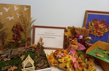 Во всех возрастных группах оформлены выставки поделок из природного материала "Осенние фантазии". Участниками были представлены разнообразные работ, выполненные из природного материала в самых разных техниках, Некоторые работы были выполнены из свежих овощей и фруктов.