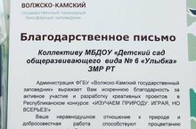 Муниципальное бюджетное дошкольное образовательное учреждение "Детский сад общеразвивающего вида № 6 "Улыбка" Зеленодольского муниципального района Республики Татарстан"