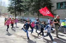 Сегодня прошел ежегодный легкоатлетический кросс "Помним и гордимся" в старших и подготовительных группах вокруг любимого детского сада с привлечением родителей.