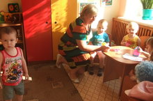 Весёлый, яркий праздник прошёл сегодня в детском саду. На этот раз в гости к ребятам пришла Царевна-Несмеяна и озорные клоуны Клёпа и Кнопочка. С большим удовольствием дети играли в игры: "Поймай мыльный пузырь", "Перенеси воздушный шарик" и др. В конце праздника была организована детская дискотека.