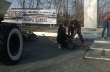 Волонтеры 10 а класса успешно приняли эстафету очистки территории монумента славы.