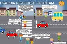 В рамках акции "Дорога в школу" Вашему вниманию предлагается информационный плакат "Правила для юного пешехода" с информацией для учащихся о правилах поведения и безопасности на дороге. -