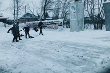 В школе организовано дежурство классов по очистке от снега территории сельского "Монумента Славы".