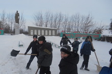 Учащиеся нашей школы приняли участие в очистке от снега территории парка "Вечная слава". Кроме того каждый класс оказывает тимуровскую помощь ветеранам Великой Отечественной войны и пенсионерам нашего села.