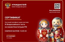 Сегодня педагоги и учащиеся 9 клаасса приняли участие во Всероссийском тесте на знание Конституции Российской Федерации.
