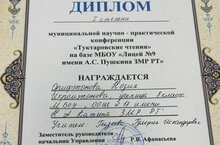 Поздравляем Орифжонову Назию с победой на научно-практической конференции "Туктаровские чтения". Научный руководитель: Гизеева Г.И.