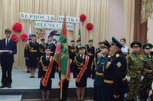 Сегодня состоялось вручение знамени кадетскому классу. Военный комиссар И.И.Паймурзин в торжественной обстановке вручил знамя директору школы И.Н.Маршаловой, председатель Содружества пограничников Кутурмин Е.В. вручил Почетную грамоту и поздравил ребят с этим важным событием.