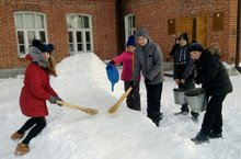 Общими усилиями учащихся нашей небольшой, но дружной школы на школьной площади была построена ледяная горка. Этому событию рады все:от ребят детского сада до старших учеников! Фото рабочего процесса под названием "Своими руками горку смастерили сами" было удостоено дипломом I степени на Международном творческом блиц-конкурсе "Зимний марафон".