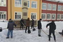 Кадеты 9и класса с воспитателем Ярагиным С.Г. провели акцию "Твори добро". Очистили танк от снега