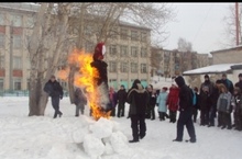 В субботу на спортивной площадке прошел праздник "Масленица", с играми и забавами. Кульминацией этого празника стало сжигание "Масленницы" под восторженные крики ребят: "Гори, гори ясно..."