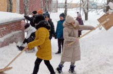 Яшь армиячеләр "Кар десанты" акциясе кысаларында мәктәп территориясен кардан чистарттылар.