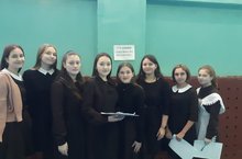 Безнең мәктәп укучылары, Баташкина Виктория һәм Якубова Кристина, "Җиңү волонтерлары" мәктәп отряды әгъзалары "Үткәнебезне саклап" дигән йомгаклау мәгариф форумында катнашалар