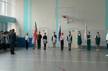 Сегодняшний понедельник традиционно открыли торжественной линейкой: вынос флагов Российской Федерации и Республики Татарстан и исполнение гимнов в голос.