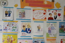 Ко Дню уважения и почитания старшего поколения младшие учащиеся школы (учитель ИЗО Ганина А.Р) приготовили выставку рисунков "О возраст осени, ты дорог и прекрасен!".