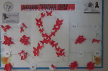 1 декабря – Всемирный день борьбы со СПИДом. Учащиеся 11 класса, активисты ДОО "Росток" провели Акцию "Красная лента".Учащимся с 1-4 класс повязали символ акции , красную ленту. Учащиеся с 5-8 класс присоединились к акции , приклеив красную ленту к номеру своего класса, учащиеся 9-11 классов сделали общую красную ленту из бабочек
