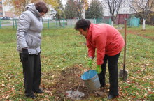 Сегодня 11 октября учащиеся и педагоги приняли участие в акции "Посадка леса".Всего посажено 28 саженцев липы, ореха и рябины по периметру школы.