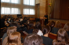 Чугунова Анна, ученица 1 б класса представляла Васильевскую школу №2. Все команды рассказывали о своем "самом лучшем классе". С Аней вместе выступали учащиеся 7 а класса.