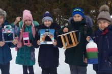 Мәктәбебездә "Кошларга ярдәм итик!" исемле акция уздырдык. Укучылар әти-әниләре белән берлектә кошларга җимлекләр ясадылар. Һәм аларны мәктәп тирәли агачларга элеп, хәзер көнсаен җим салып карап торалар.