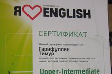 Обучающийся ВСОШ №3 - Гарифуллин Тимур успешно прошел тестирование на знание грамматики английского языка, который показал его уровень Upper Intermediate.