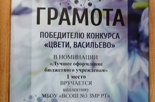 Мәктәбебез район күләмендә уздырылган "Цвети, Васильево" конкурсында 1 урын яулады.