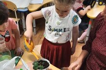 Трудовое воспитание является одной из важнейших сторон воспитания подрастающего поколения. В детском саду трудовое воспитание заключается в ознакомлении детей с трудом взрослых, в приобщении детей к доступной им трудовой деятельности. В процессе ознакомления с трудом взрослых воспитатель формирует у детей положительное отношение к их труду, бережное отношение к его результатам, стремление оказывать взрослым посильную помощь. Воспитанники младшей группы под руководством воспитателя Перцевой А.Б. посадили комнатные растения: герань, фиалки. Приучать ребёнка к заботе о комнатных растениях можно уже лет с четырех. В этом возрасте дети уже начинают испытывать потребность в занятии, которое напрямую зависит только от них. И им интересно видеть плоды своей работы.
