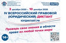 С 3 по 10 декабря 2020 года проверить свои знания по праву можно проверить на сайте юрдиктант.рф 03.12.2020