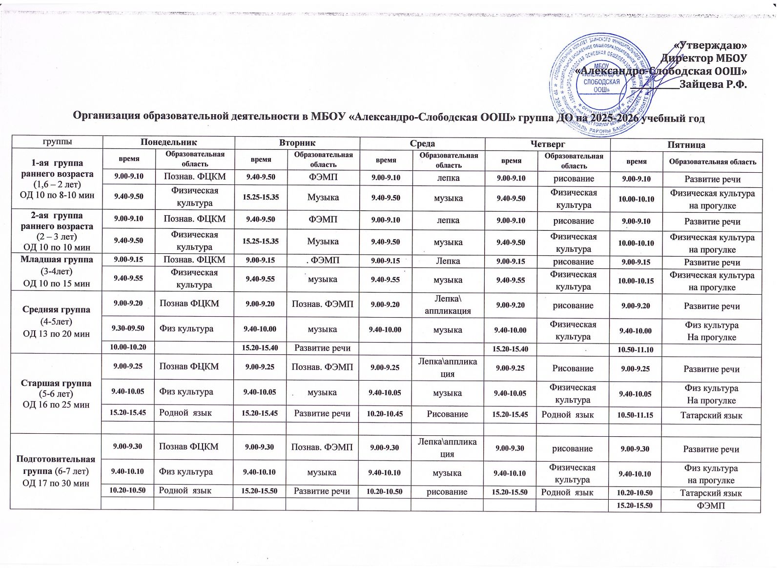 Сетка занятий 2025-2026