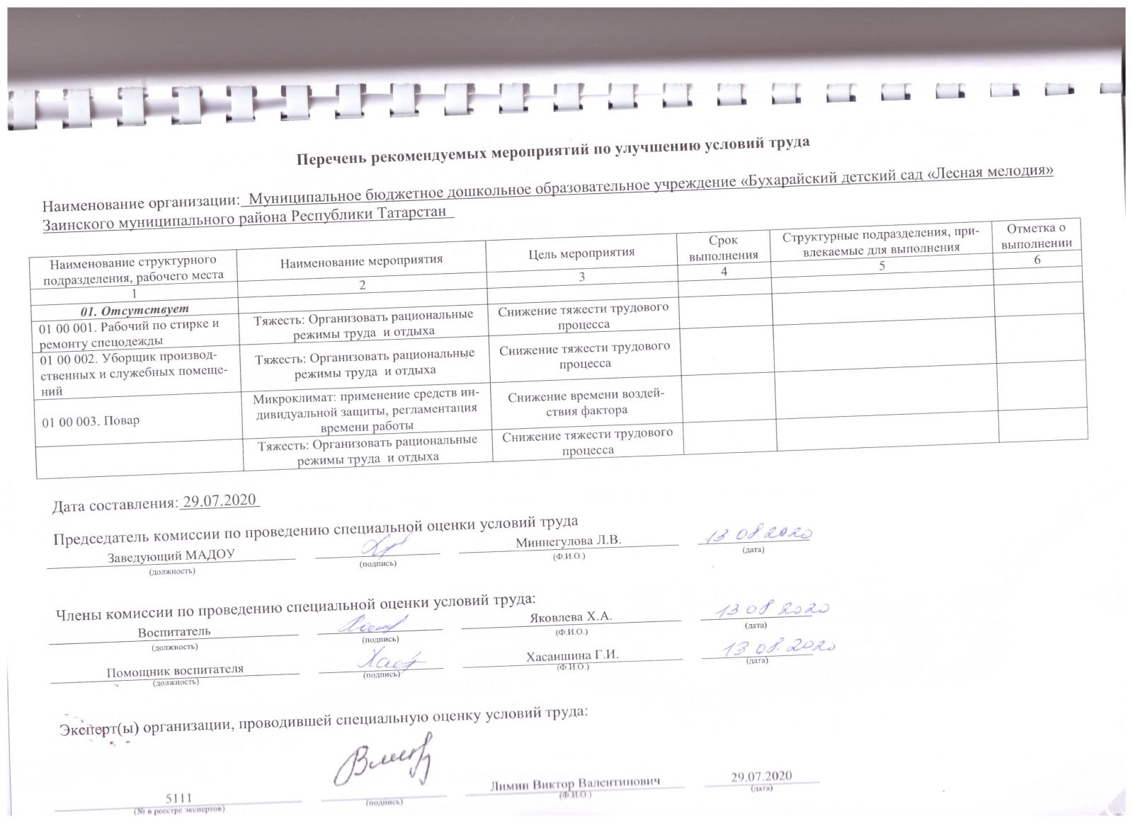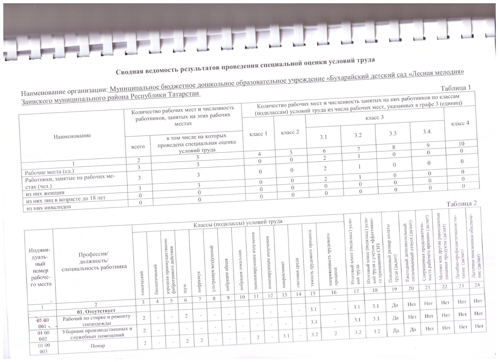 Сводная ведомость результатов проведения специальной оценки условий труда скачать