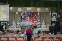 Педагоги отделения изобразительного искусства оформили сцену актового зала школы №7 для проведения муниципальных Ёлок .